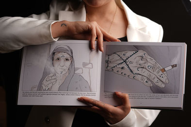It is a project of a graphic novel, that narrates a series of stories and questions identity, which is been experienced by a woman artist in Iraq .